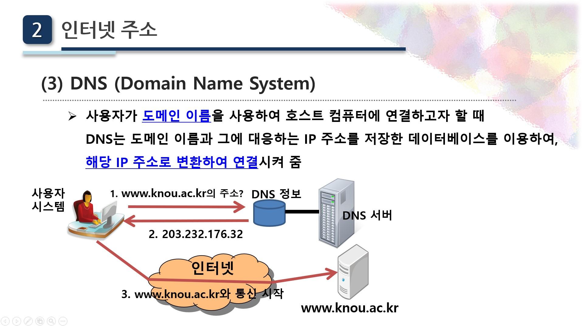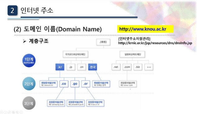 도메인 이름(Domain Name)은 인터넷에 연결되어 있는 호스트 컴퓨터의 주소를 나타내는 IP 주소는 숫자로 구성되어 있다.