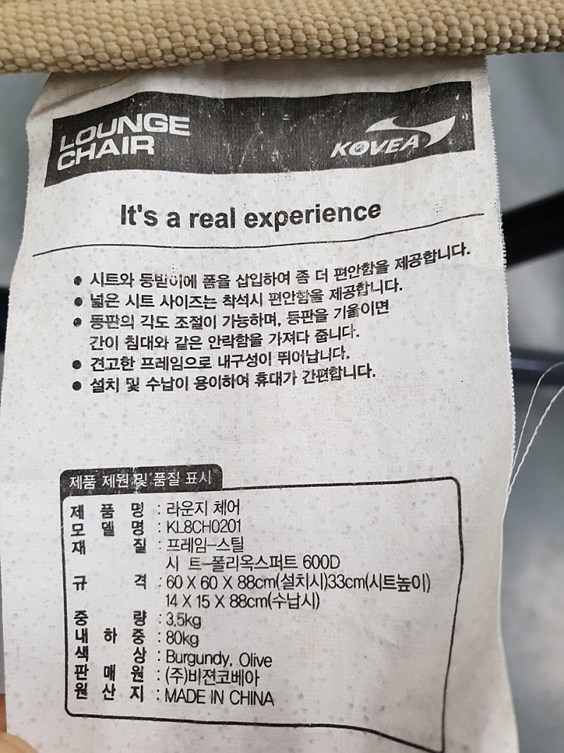 기존 릴렉스 체어보다 약간 무거운 편입니다. (3.5kg, +600g 정도)